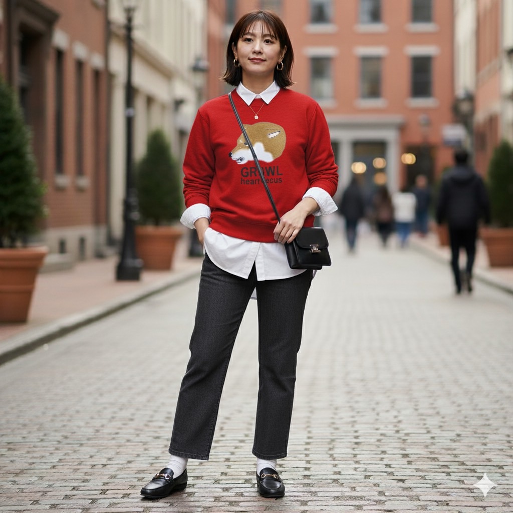 赤いボディ生地が目を惹く可愛いトレーナーです😍