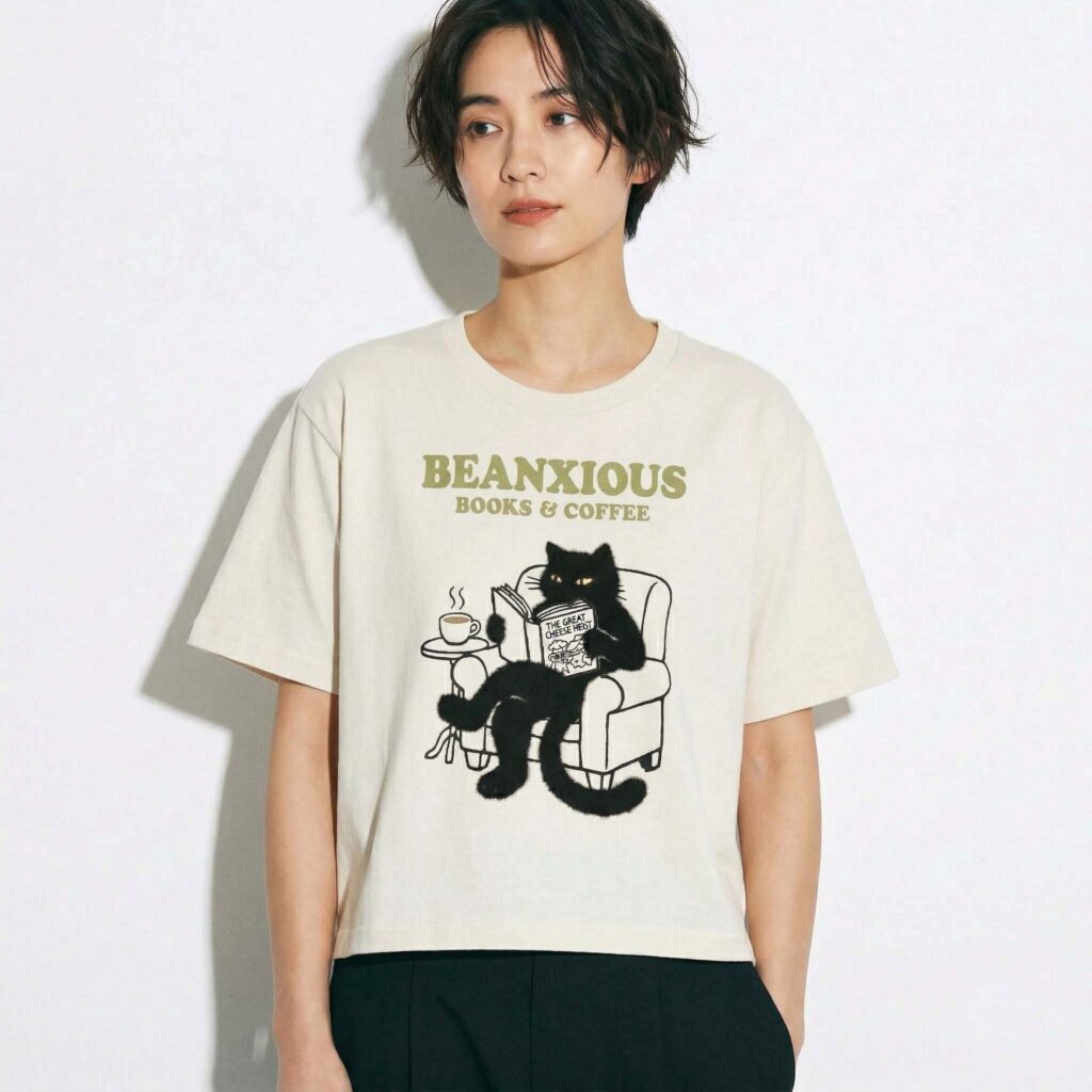 「BOOKS & COFFEE」:ソファで読書を楽しむ黒猫。毛並みの柔らかな質感は、まるで隣でくつろいでいるかのよう。